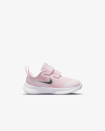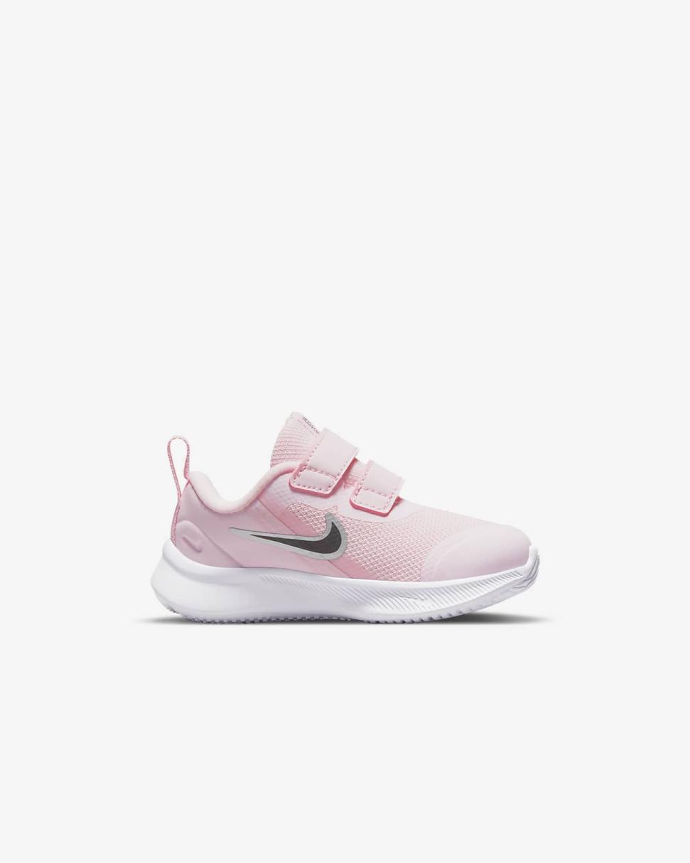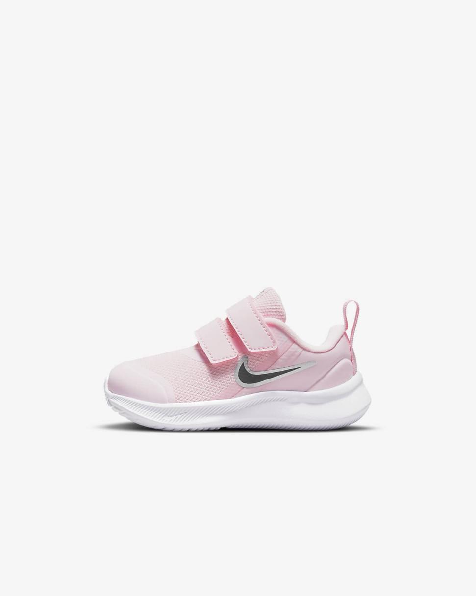 We've got some serious star power here. The Nike Star Runner 3 shoots for the sky with play-ready shoes made for each crawl to every growing step. We've added 2 straps for easy takeoff, plus supersoft foam and lots of flexibility to rocket up the comfort. Designed with the Earth in mind, they're made with at least 20% recycled content by weight.