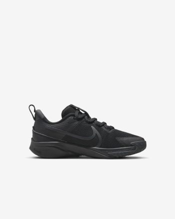 Get out the door in a flash with the Star Runner. Loops on the tongue and heel make it easy to open the shoe up wide so little star runners can step in and get going. Soft cushioning in the midsole provides a comfortable, springy return so 1 more round, lap and turn is always an option. The tread grabs at pavement, grass and gravel to give them extra grip while a rubber-wrapped toe toughens up the construction so they can go further in the same pair of Star Runners.