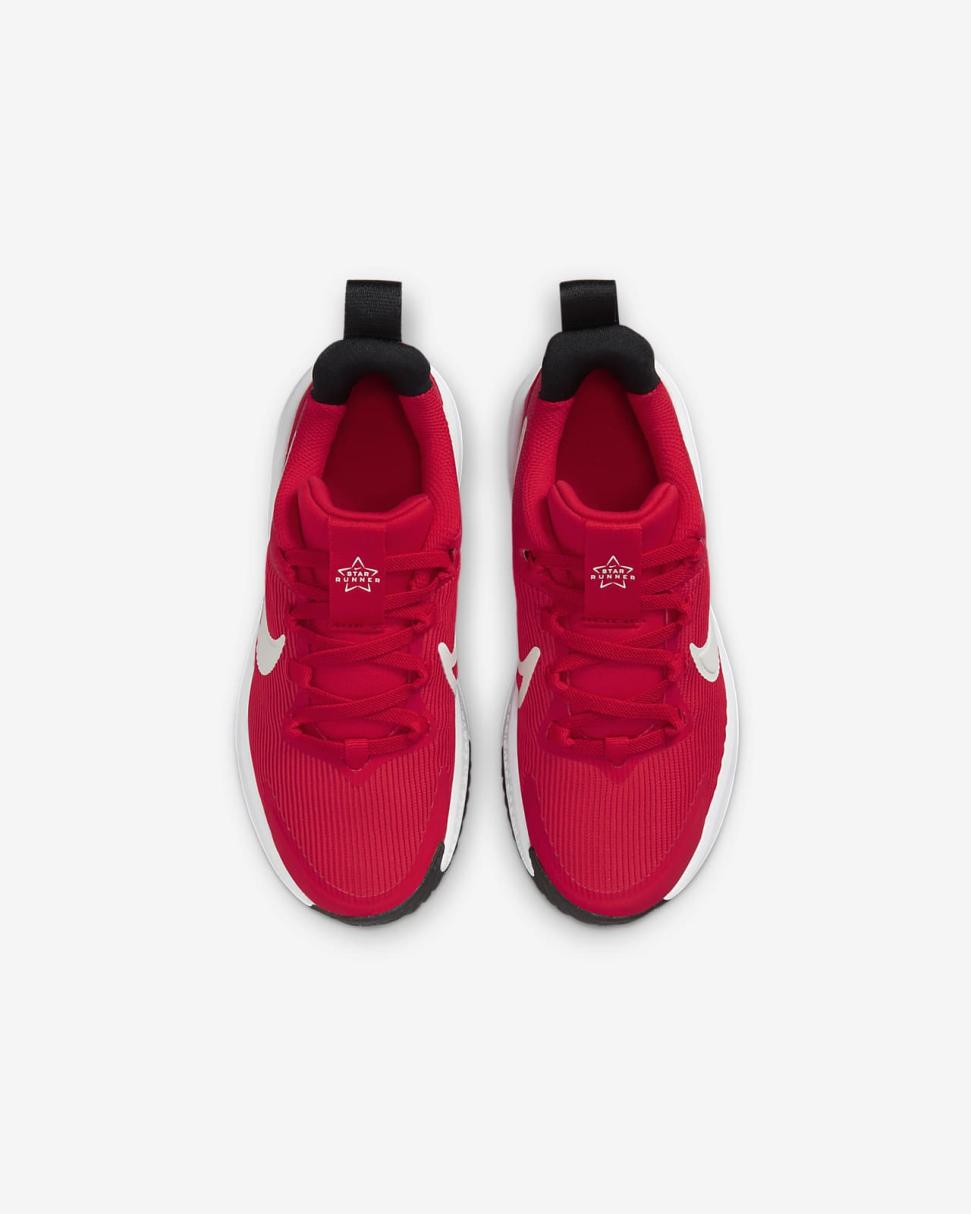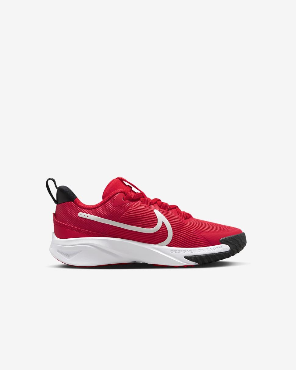 Get out the door in a flash with the Star Runner. Loops on the tongue and heel make it easy to open the shoe up wide so little star runners can step in and get going. Soft cushioning in the midsole provides a comfortable, springy return so 1 more round, lap and turn is always an option. The tread grabs at pavement, grass and gravel to give them extra grip while a rubber-wrapped toe toughens up the construction so they can go further in the same pair of Star Runners.