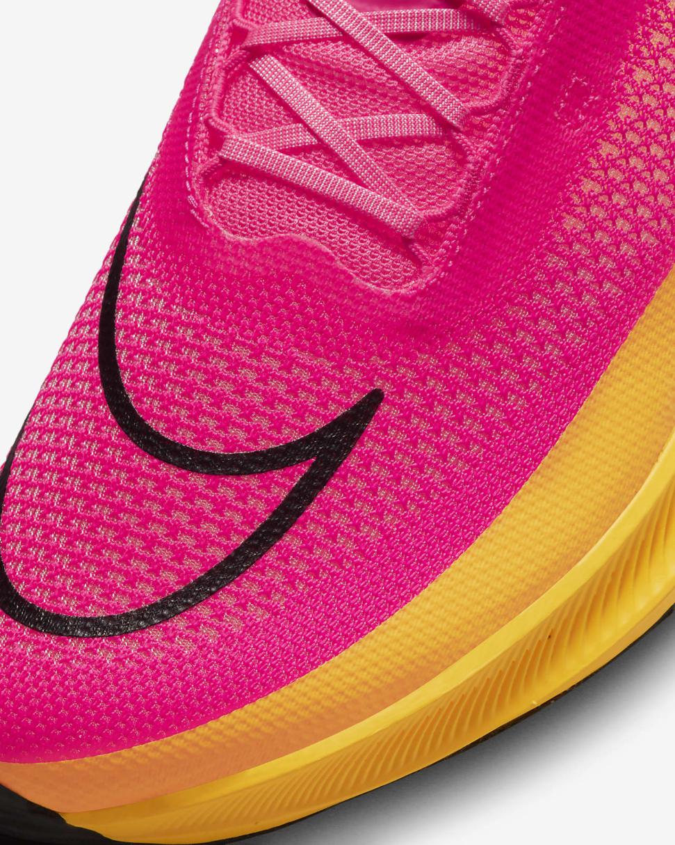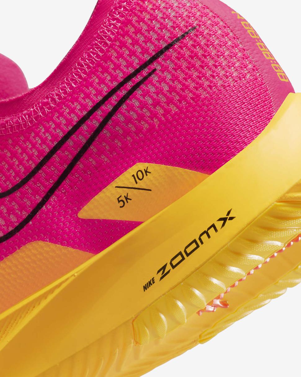 A full-length ZoomX midsole provides optimal lightweight responsiveness. The foam stack heights are lower than the Vaporfly, saving weight and giving you a more aggressive feel. It results in a shoe so light, it disappears on your foot while still giving you the responsive cushioning of ZoomX foam, helping you reach your fastest pace throughout the turns and accelerations of any race.