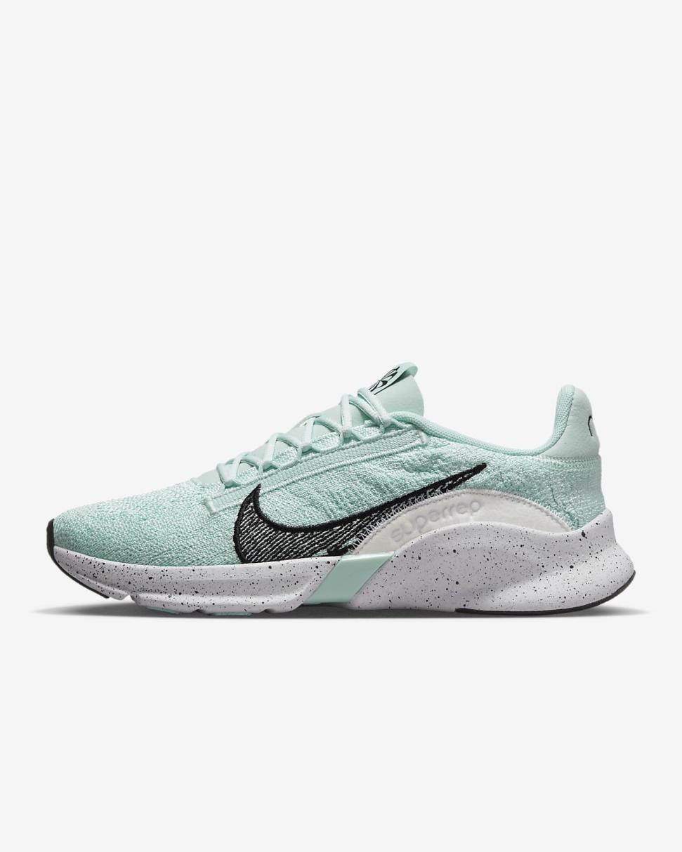 The new Nike SuperRep Go 3 Flyknit is a radical design story rooted in innovation. Made with at least 20% recycled content by weight, the zoned Flyknit construction wraps your foot in 360 degrees of comfort and support. A finely ground, reclaimed foam midsole gives you responsive cushioning for high-impact training. The lightweight, packable design lets you keep them close, no matter where your next workout takes you.