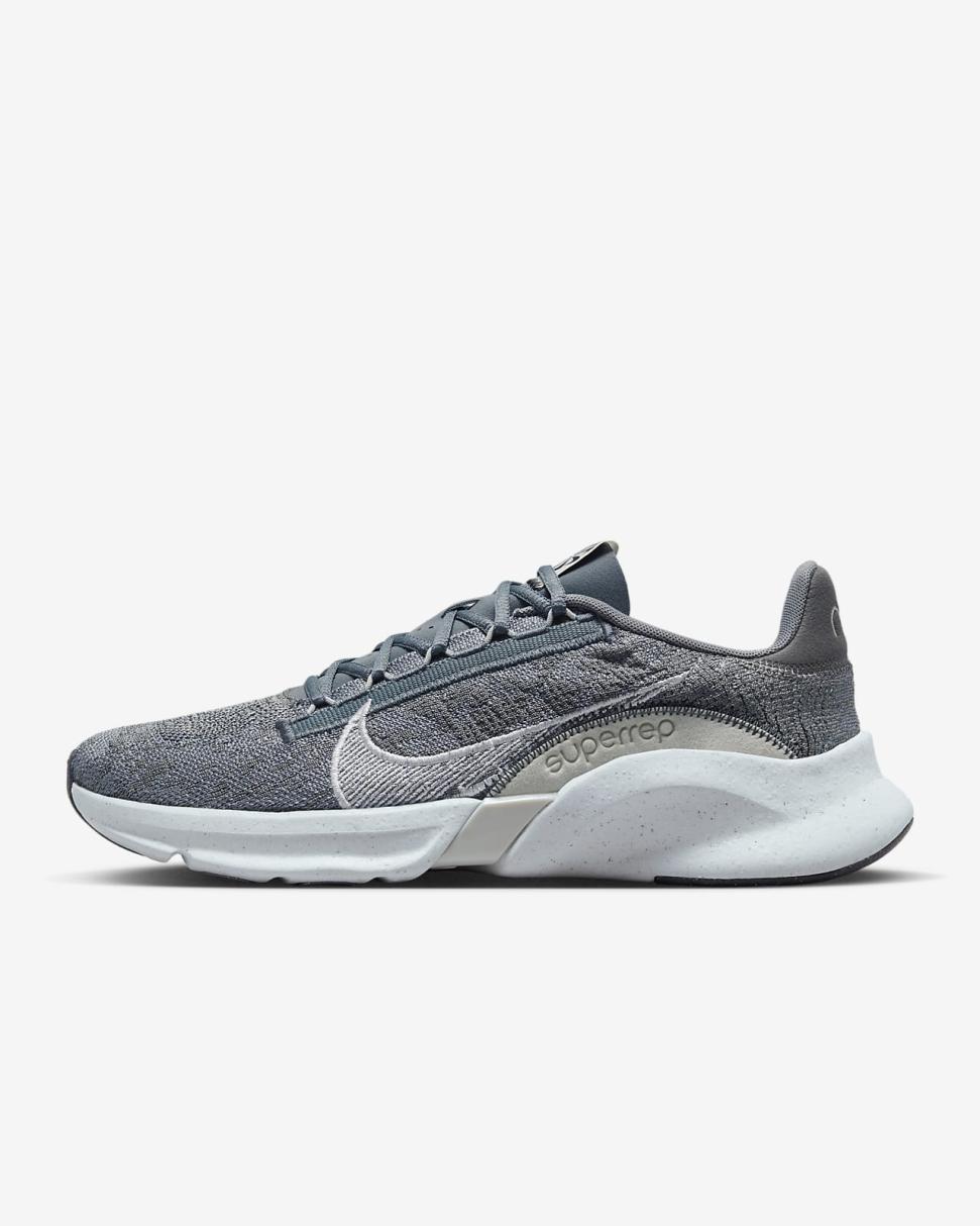 The new Nike SuperRep Go 3 Flyknit Shoe is a radical design story rooted in sustainability and innovation.The zoned Flyknit construction wraps your foot in 360 degrees of comfort and support. A finely ground, reclaimed foam midsole gives you responsive cushioning for high-impact training. The lightweight, packable design lets you keep them close, no matter where your next workout takes you.