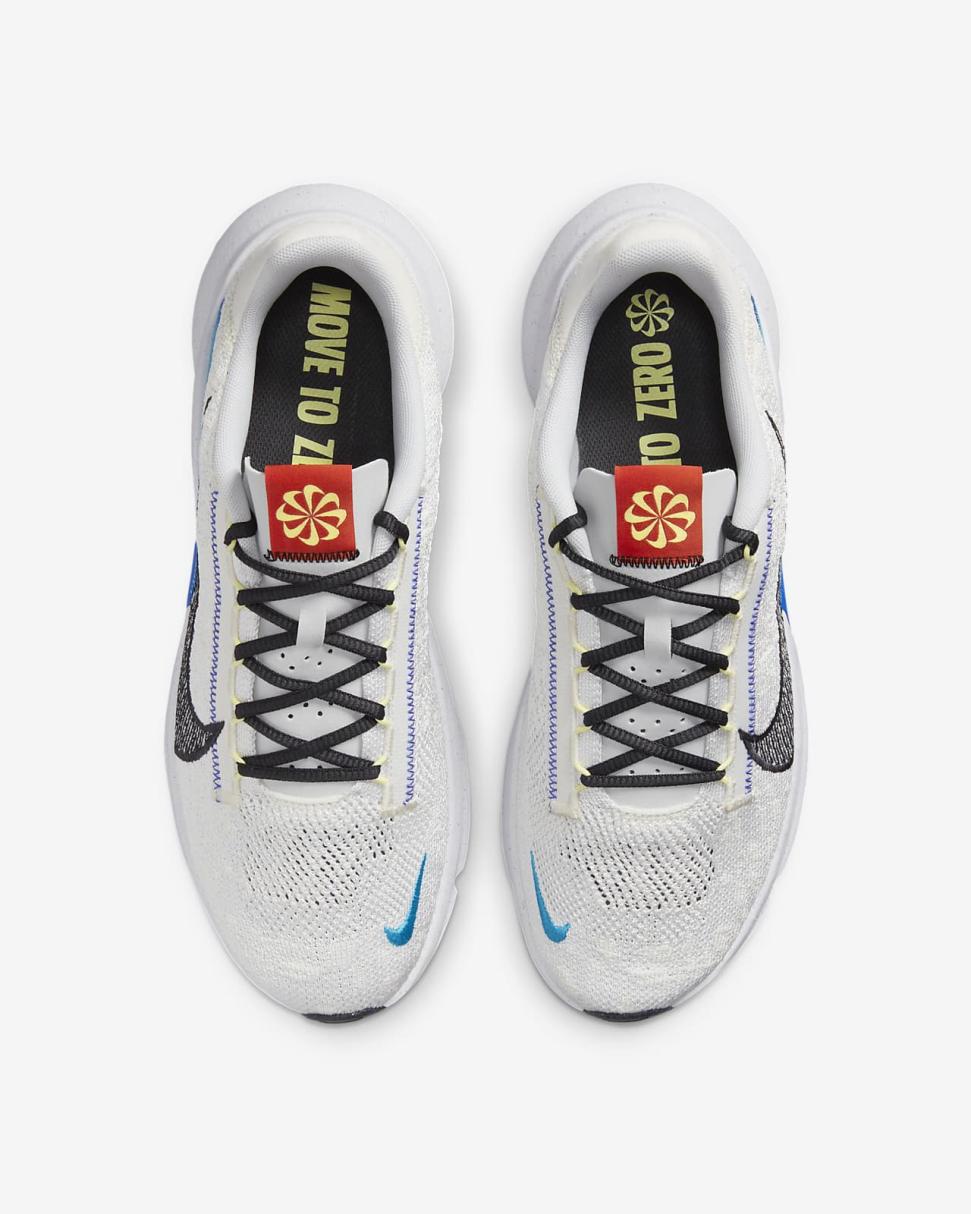 Made with recycled materials to lessen the impact on our planet, it features a stretchy zonal Flyknit upper construction made with recycled fibers and strategically zoned for added containment during movement. Modified Crater foam with Nike Grind material was used in the midsole for improved comfort, stability and durability.