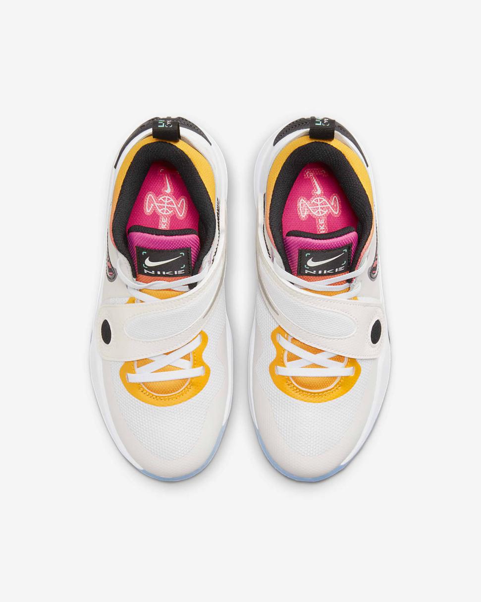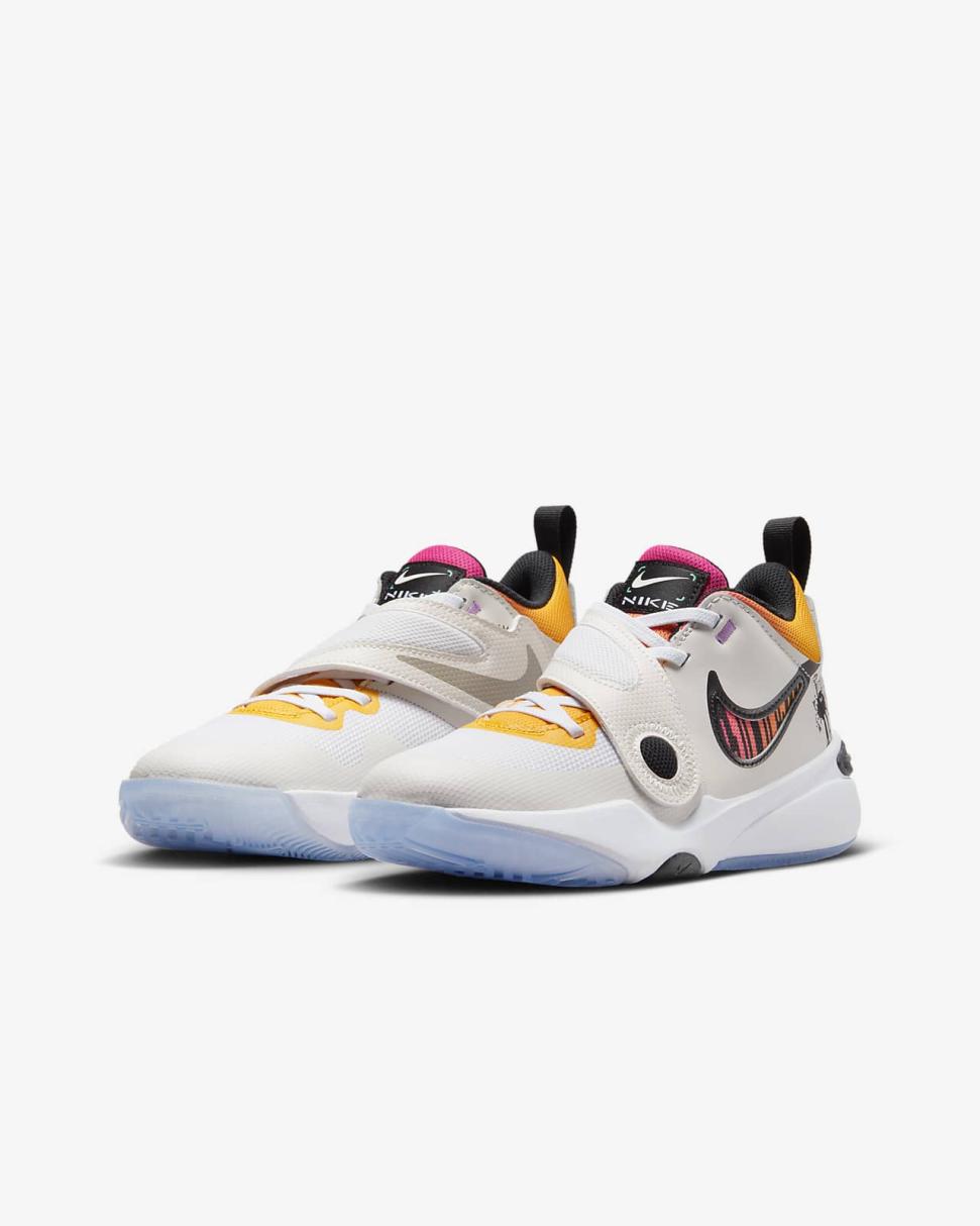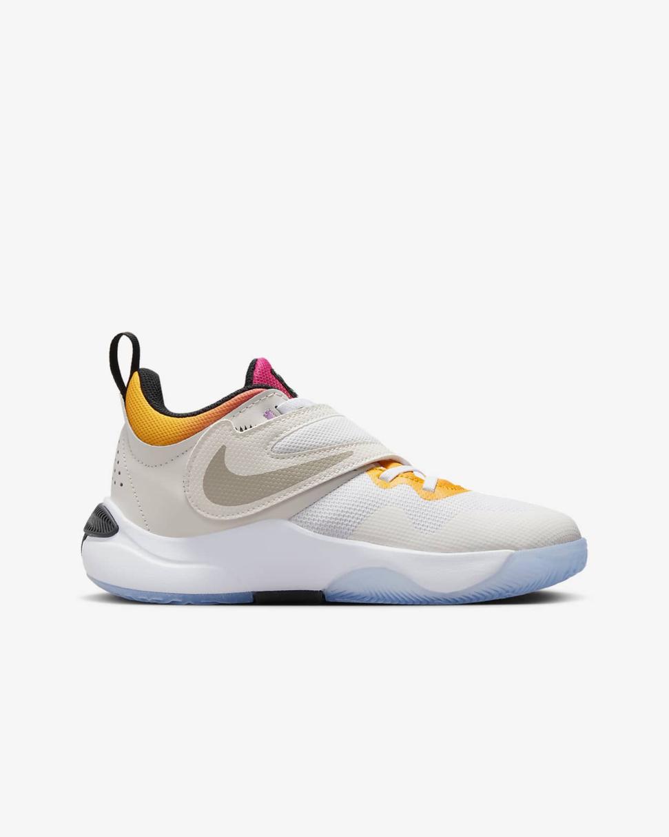 Ready for new basketball shoes? How about for gym class or just playing outside? Meet the Team Hustle D 11. With this edition of our Team Hustle D series, our top priority is making a shoe that's super easy to take on and off. Elastic laces give you a wide opening while a big strap secures your fit. Plus, you get plush cushioning. The ultimate basketball and recess shoe is back and ready to play.