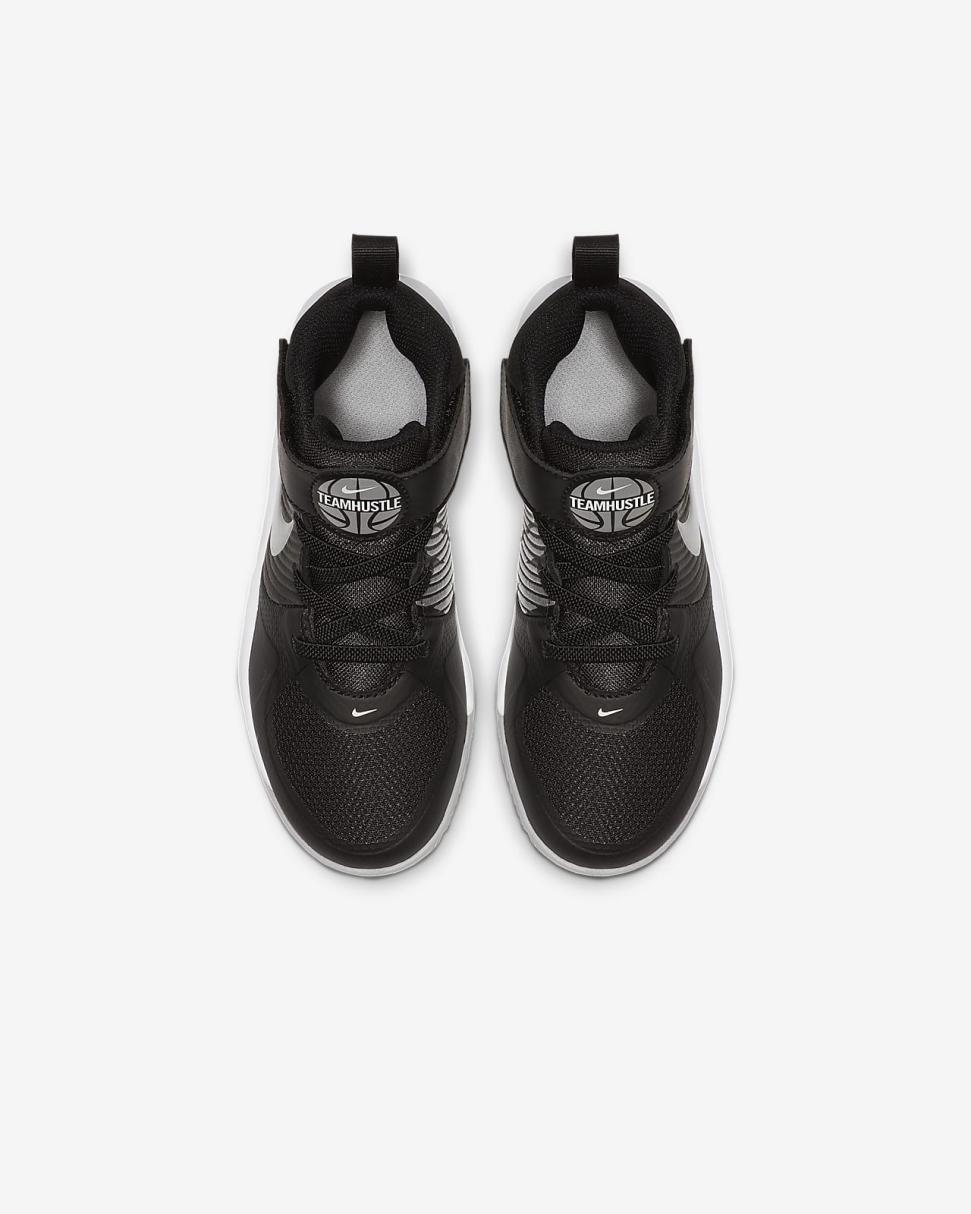 The Nike Team Hustle D 9 captures style from the basketball court in a durable design. Lightweight fabric around the forefoot is breathable, and leather around the sides creates structure. Soft foam cushions little feet for comfort that lasts all day.