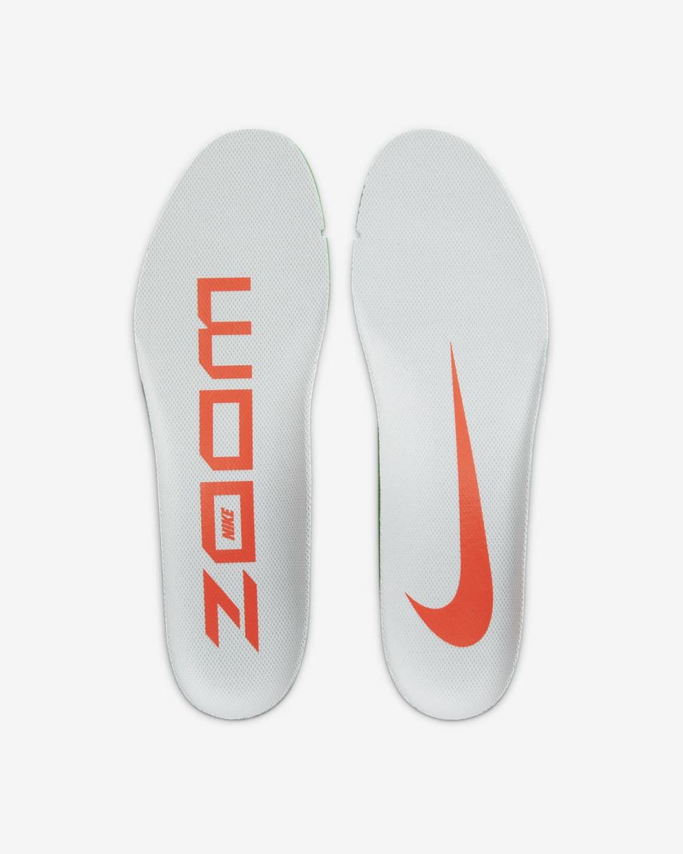 Your foot sits on Nike ZoomX, our lightest and highest energy returning foam. It gives you a smooth ride from foot strike through your transition. We combined it with Zoom Air cushioning under the forefoot for a snappy, responsive feel as you push off.