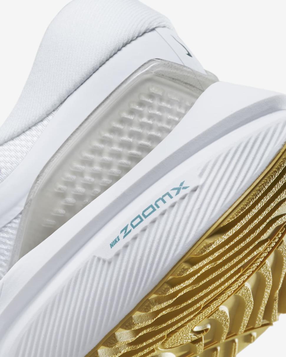 Your foot sits on Nike ZoomX, our lightest and highest energy returning foam. It gives you a smooth ride from foot strike through your transition. We combined it with Zoom Air cushioning under the forefoot for a snappy, responsive feel as you push off.