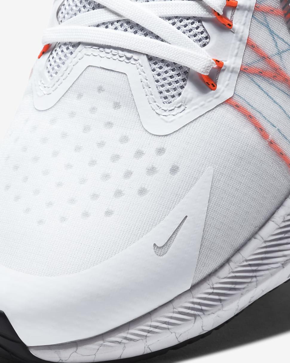 The upper uses translucent mesh and perforations at the forefoot for breathable comfort. The Flywire cables work with the laces to provide more support as you tighten them.