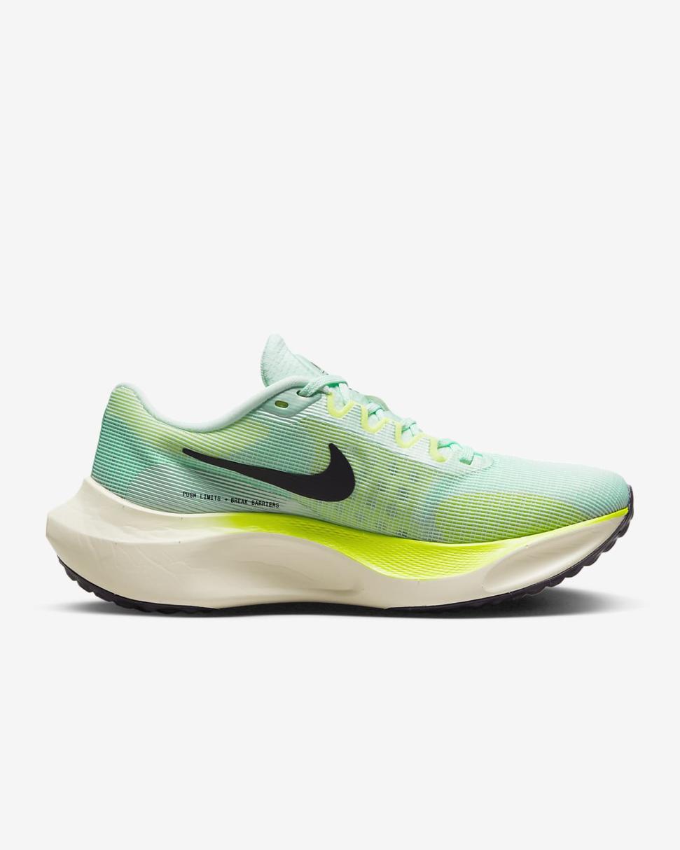 Newly implemented ZoomX foam in the midsole takes an already respected, trusted shoe to another performance level that wasn’t present in the Zoom Fly 4. The addition makes for a lighter, more responsive cushioning system. Take advantage of these all-purpose traits that help you run easier, faster and have more fun on your runs.