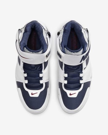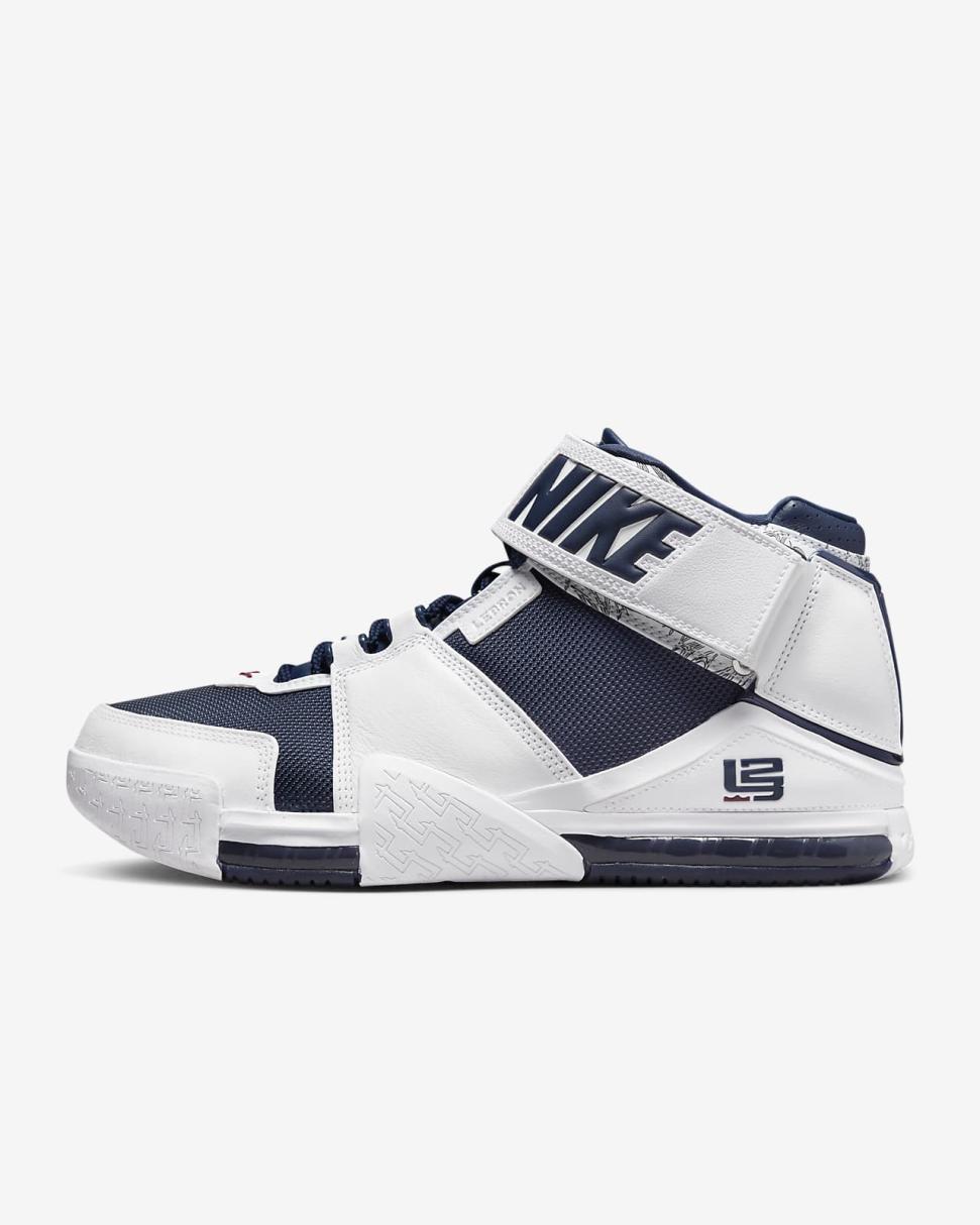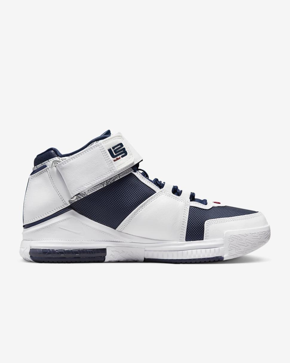 Showcase your game in this 1:1 throwback and celebrate the King's 1st run with the red, white and blue. All-American colors honor the special moment in history—a young LeBron flashing his raw talent—while graphics on the collar and tongue keep the royal detailing you expect. Ballistic fabric on the sides and crisp leather round out the look that shined on the world stage.