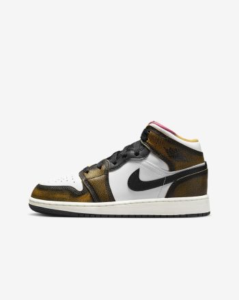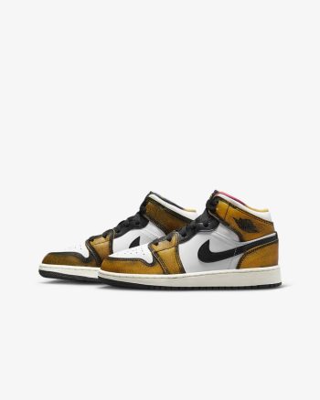 Air Jordan 1 Mid SE Black/White/Sail/Taxi | Kids Nike Jordan